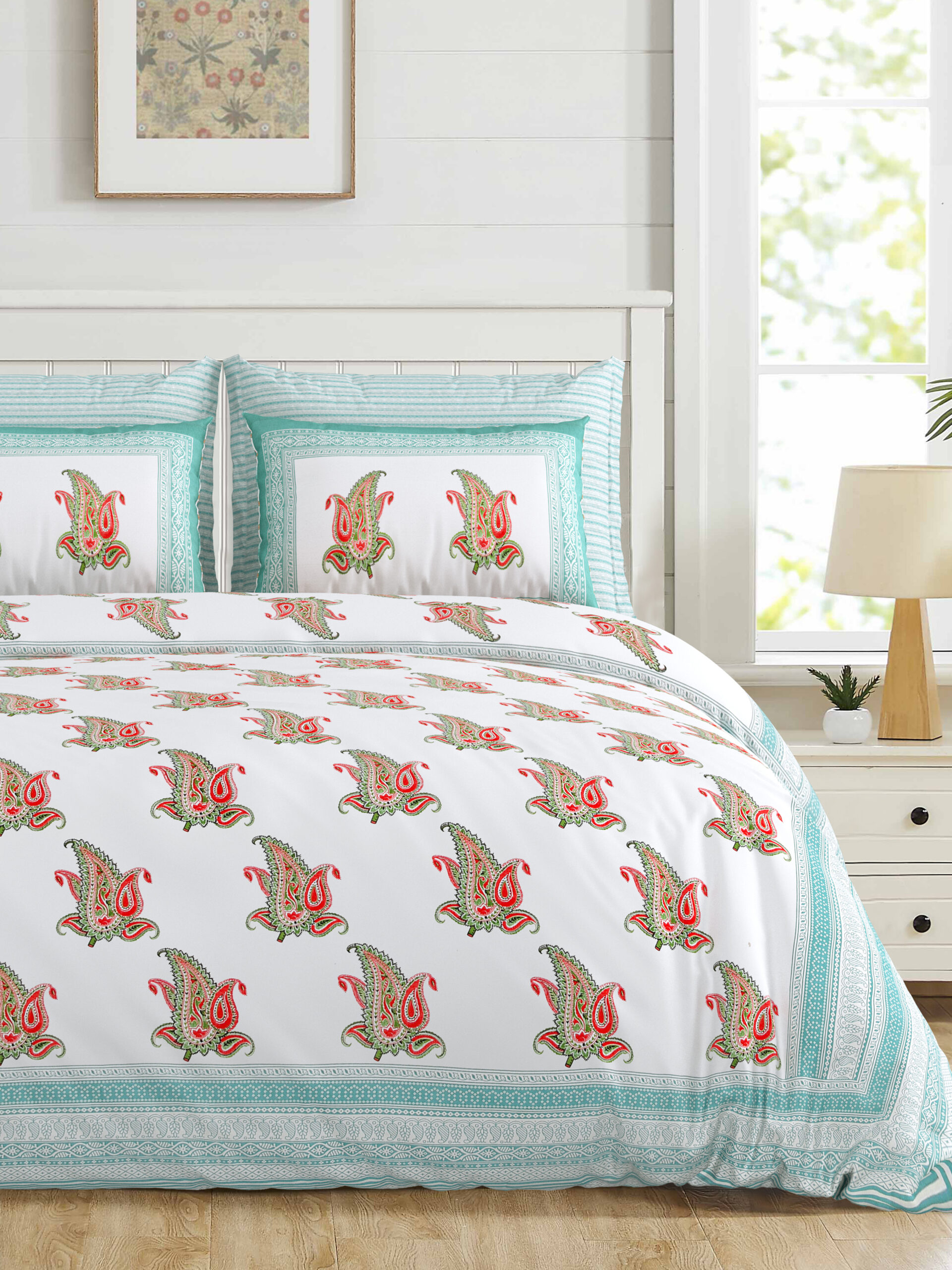 Bring elegance and tradition to your bedroom with our REAL HANDBLOCK Jumbo Size Bedsheet Set. Made from 100% premium cotton autoloom fabric, it offers a smooth, soft touch with excellent breathability, perfect for year-round comfort. The handblock print adds a beautiful, artistic touch to your decor, making your space look warm and inviting.