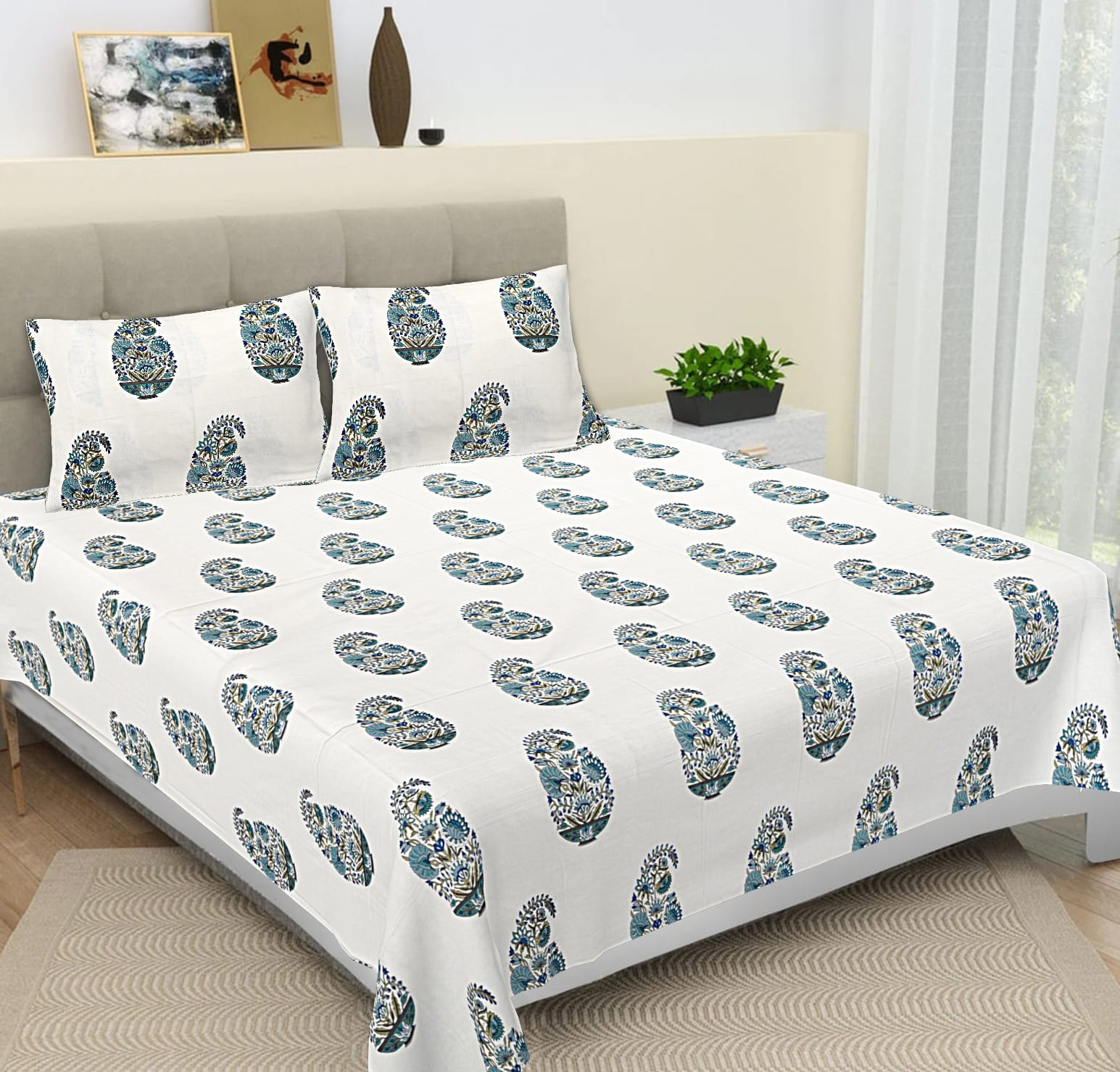 • Bedsheet Size: 9 ft x 9 ft (108 in x 108 in) – All sides stitched
